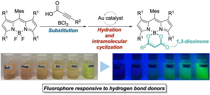 B-spiroBODIPYs as a fluorophore responsive to hydrogen bond donors